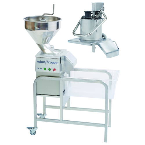 (CL 55 CH 1PH) Vegetable Preparation Machine, electric, (1) speed, magnetic safety system, stainless steel motor base/lid/ continuous hopper & control hopper with stand, 375 rpm, 750 Watts, 230v/50/1-ph, CE (discs not included) (dimensions given with the stand)