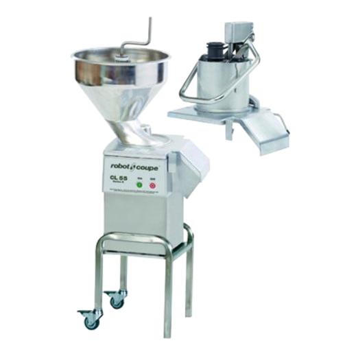 (CL 55 CH 3PH) Vegetable Preparation Machine, electric, (2) speeds, stainless steel motor base/lid/ continuous hopper & control hopper with stand, 375 & 750 rpm, 1100 watts, 400v/50/3-ph, CE (discs not included) (dimensions given with the stand)