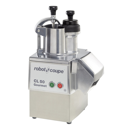(CL 50 GOURMET) Vegetable Preperation Machine, electric, (1) speed, automatic restart with the pusher, 2 Discs for Bruniose cut or waffle cutter to be selected, metal vegetable bowl & lid, removable lid equipped with large kidney shaped & cylindrical hopper, removable collection tray, stainless steel base, 375 rpm, 550 watts, 230v/50/1-ph, CE