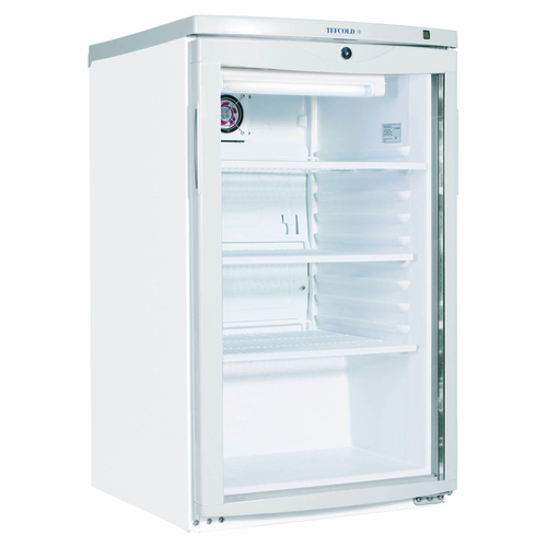 Tefcold® Undercounter Chiller, 503mm W, countertop 109 litre/3.8 cu. ft. capacity, (1) curved profile, lockable, hinged glass door, +2°C to +10°C temperature range, automatic defrost, white moulded plastic interior with (3) adjustable shelf & interior lighting, white exterior finish, self-contained refrigeration, adjustable feet, R600a, MEPS D (Web Deal Price is available until the 31st January 2026 whilst stocks last, when you place your order directly through the TEFCOLD website only)