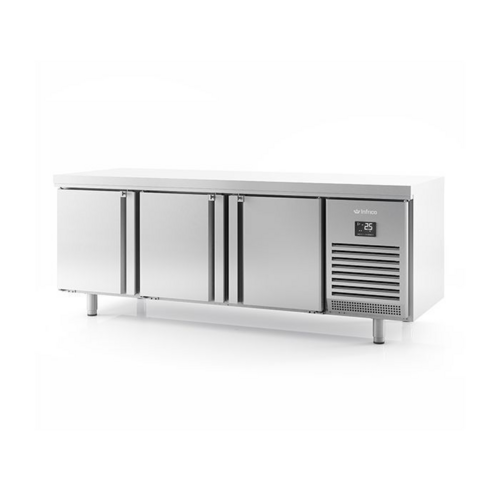 Infrico Pass Thru Counters, 700mm depth, 435L capacity, High grade AISI 304 stainless steel exterior and interior, Rounded internal corners & internal drain for easy cleaning, Supplied with one shelf per door, Adjustable legs, Glass door option with LED lighting available POA, Automatic Defrost, Digital Controller