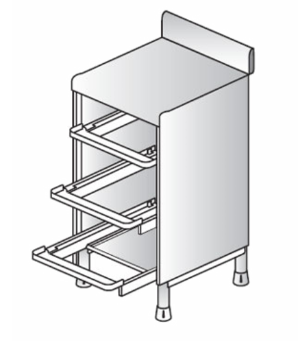 Bartender Basket Rack, 505mm, solid top, (3) telescopic slides, for 450x450mm basket, stainless steel construction, 1x leg frame