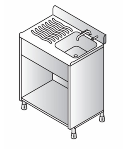 Bartender Single Sink, 1000mm, left hand slotted drainboard top & (1) sink, (1) stainless steel undershelf, stainless steel construction, 1x leg frame, mixer tap set, 1-1/4″ waste trap
