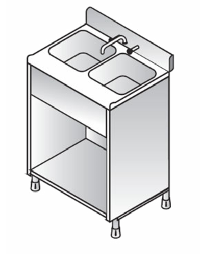 Bartender Double Sink, 800mm, (2) sinks, no drainboard, (1) stainless steel undershelf, stainless steel construction, 1x leg frame, mixer tap set, 1-1/4″ waste trap