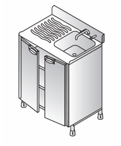 Bartender Single Sink, 600mm, left hand slotted drainboard top & (1) sink, (1) stainless steel undershelf, door, stainless steel construction, 1x leg frame, mixer tap set, 1-1/4″ waste trap