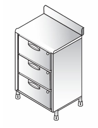 Bartender Three Drawer Unit, 400mm, solid top, (3) drawers, stainless steel construction, 1x leg frame