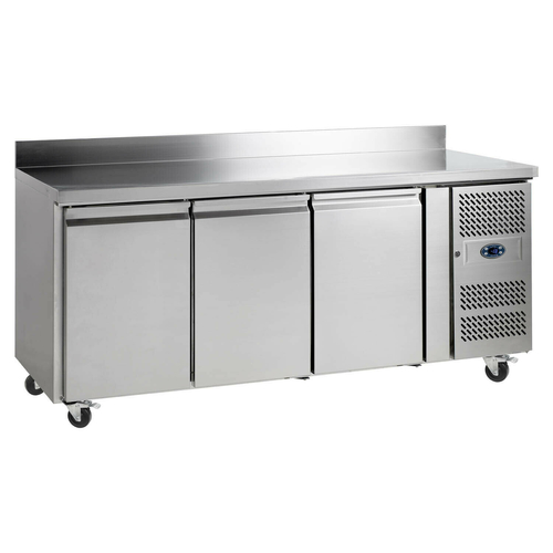 Tefcold® Gastronorm Freezer Counter, 1795mm W, 417 litre/14.7 cu. ft. capacity, (3) door & shelves, -10° to -20°C adjustable temperature range, digital display/controls, splashback, stainless steel exterior & interior, electric defrost, side mounted self contained refrigeration, castors, 950mm height including splashback, R290, 570 watts, MEPS D (Web Deal Price is available until the 31st January 2026 whilst stocks last, when you place your order directly through the TEFCOLD website only)