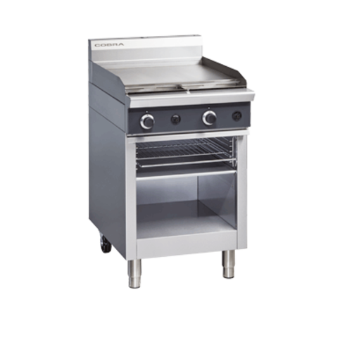 Cobra® Series Medium Duty Range, gas, 600mm, 12mm thick griddle plate, toaster compartment with (5) position rack, manual controls, open cabinet base, stainless steel finish, (2) adjustable legs (front) & (2) rollers on rear, 11.0kW (gas), 41,700 BTU, CE