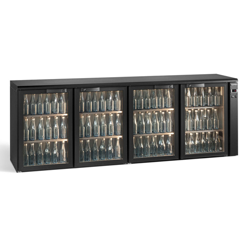 Eco-Line Cooling Cabinet, undercounter, four-section, 2292mm W, 630 litre capacity, (722) 330 ml bottle capacity, (4) hinged glass doors with locks, digital thermostat, +1° C / +12° C temperature range, automatic defrost, silver coloured skin plate interior, anthracite exterior, remote refrigeration, 220-240v/50/1-ph, 54 watts (supplied without condensing unit)