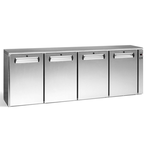 Eco-Line Cooling Cabinet, undercounter, four-section, 2292mm W, 630 litre capacity, (722) 330 ml bottle capacity, (4) hinged solid doors, digital thermostat, +1° C / +12° C temperature range, automatic defrost, silver coloured skin plate interior, stainless steel exterior, remote refrigeration, 220-240v/50/1-ph, 30 watts, (supplied without condensing unit)