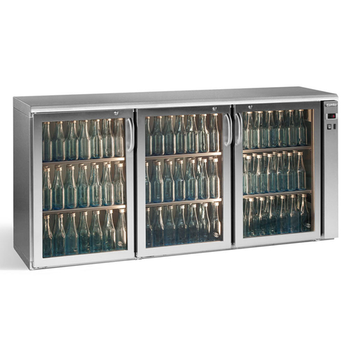 Eco-Line Cooling Cabinet, three-section, undercounter, 1738mm W, 495 litre capacity, (531) 330 ml bottle capacity, (3) hinged glass doors with locks, digital thermostat, +1° C / +12° C temperature range, automatic defrost, silver coloured skin plate interior, stainless steel exterior, remote refrigeration, 220-240v/50/1-ph, 138 watts, (supplied without condensing unit)