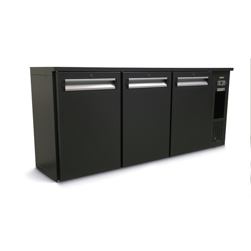 Eco-Line Cooling Cabinet, three-section, undercounter, 1988mm W, 537 litre capacity, (531) 330 ml bottle capacity, (3) hinged solid doors, digital thermostat, +2° C / +18° C temperature range, automatic defrost, silver coloured skin plate interior, (6) shelves, anthracite exterior, 220-240v/50/1-ph, 210 watts