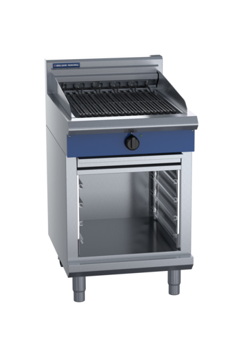 Heavy Duty Chargrill, electric, floor model, 600 mm, direct contact heating element, up to 400°C cooking temperature, stainless steel top, sides & splash guards, vitreous enamelled control panel, drain collection pan, open cabinet base, stainless steel legs with adjustable feet & rear rollers, fully modular, 8.4 kW, 400-415v/50/60/3-ph, CE