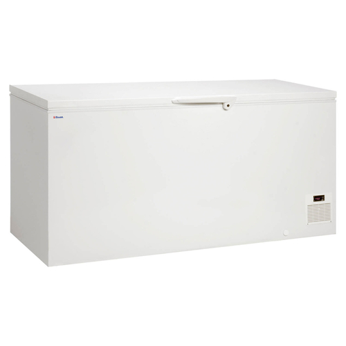 Elcold Chest Freezer, 1705mm W, 416 litre/14.7 cu .ft. capacity, -10° to -45°C adjustable temperature range, static cooling, electronically controlled, lock fitted, digital display, temperature alarm light, manual defrost with drain, bottom mounted compressor, white exterior, hammered aluminium interior, R290, feet