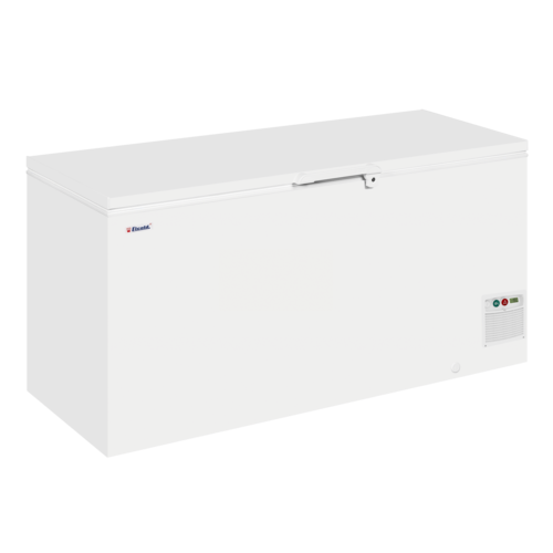 Chest Freezer, solid lid with lock, digital temperature display, static cooling, -23°C to -16°C temperature range, interior light, mains indicator light, white interior and exterior finish, (3) baskets, with feet, defrost drain, R600a refrigerant, Climate Class: 3, Energy Rating: C, Energy Consumption: 738kWh per Annum, 13 amps