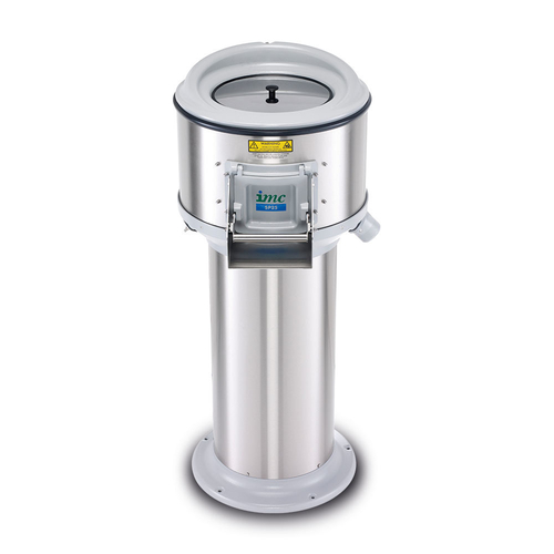 IMC SMP25H Potato Peeler, electric, floor mounted, 603mm W, 25kg of potatoes in 2 minutes (513kg per hour), timer, dual position waste outlets, pedestal base, stainless steel construction, 1 HP, 0.75kW, 230v/50/1-ph, 10.0 amps, IPX5
