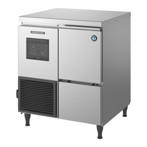 FM Series Ice Maker with Bin, flake ice, 85kg production/24hrs, 26kg bin capacity, stainless steel exterior, air-cooled, R290 Hydrocarbon refrigerant, 220-240v/50/1-ph, connection load: 0.29kW (overall height includes 89mm legs)