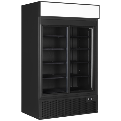 Tefcold Upright Glass Door Chillers, fully automatic, fan assisted cooling, adjustable full width shelves, lock, adjustable feet with rollers to rear, led interior light with switch, temperature display, self closing sliding glass doors, led light canopy with switch, temperature range [+2°C to +10°C], black interior & exerior, 13 amp, R290 (Web Deal Price is available until the 31st January 2026 whilst stocks last, when you place your order directly through the TEFCOLD website only)