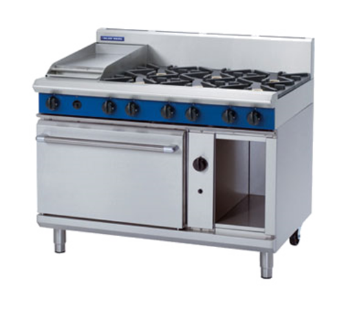 Evolution Series Heavy Duty Range, gas, 1200 mm, (6) 7 kW open burner, 300 mm smooth griddle plate with manual control, 2/1 GN oven, (1) cabinet base, splashback, stainless steel finish, adjustable feet with rear castors, 57 Gas KW
