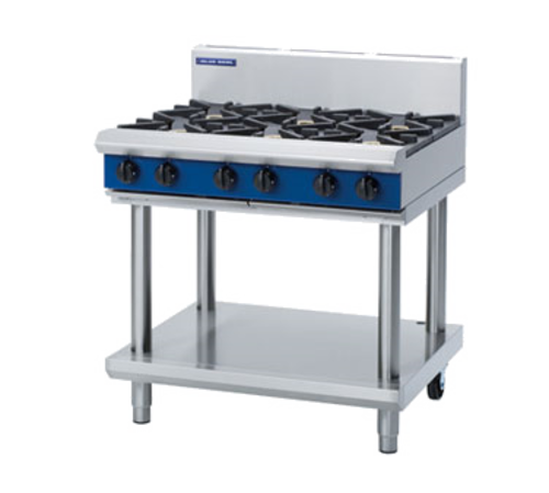 Evolution Series Heavy Duty Cooktop, gas, 900 mm, (6) 7 kW open burners, splashback, open stand with shelf, stainless steel finish, 42 Gas KW