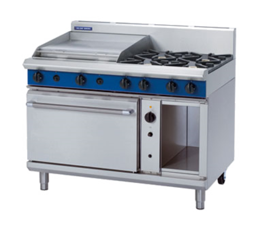 Evolution Series Heavy Duty Range, gas, 1200 mm, (4) 7 kW open burner, 600 mm smooth griddle plate, manual control, 2/1 GN convection oven, (1) cabinet base, splashback, stainless steel finish, adjustable feet with rear castors, 49 Gas kW