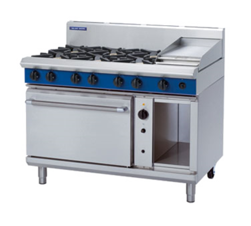 Evolution Series Heavy Duty Range, gas, 1200 mm, (6) 7 kW open burner, 300 mm smooth griddle plate, manual control, 2/1 GN convection oven, (1) cabinet base, splashback, stainless steel finish, adjustable feet with rear castors, 57 Gas KW