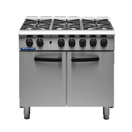Range, gas, 900 mm, (6) 5.8 kW open burners, semi sealed hob, 2/1 GN oven, side hinged doors, (5) oven positions, supplied with (2) wire shelves, stainless steel finish, adjustable legs 147,000 BTU, 42.7 Gas kW