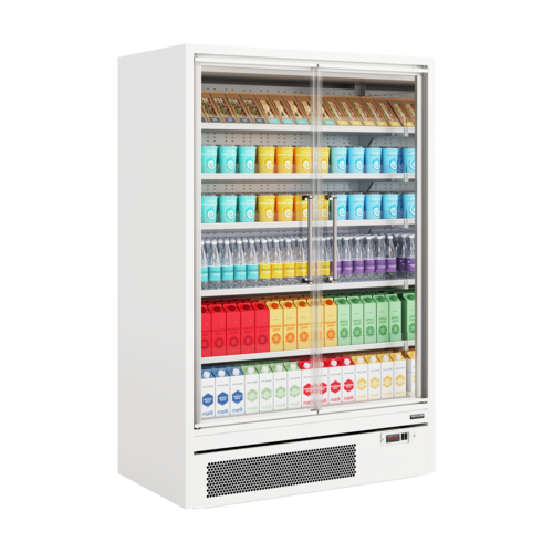 Multideck With Doors, fully automatic, fan assisted cooling, Internal vertical & horizontal LED light, Solid 40 mm endwalls with mirrored interior, Frameless hinged double glazed self closing doors, 5 AdjusTABLE shelves, max weight 160kg/sq metre, Shelves can be flat or angled to 7° or 14°, EPOS Ticket strips & shelf risers, SuiTABLE for fresh meat, Can be multiplexed with kit (POA), Door widths match on G14 & G26 & on G10 & G20, Delivered without handles and rear stand-offs attached, will fit through 750mm door, Exterior Finish: WHITE RAL9003, Interior Finish: WHITE RAL9003, Net Weight: 369kg”, automatic defrost type, R290 Refrigerant, Climate Class: 3, Energy Rating: B, Energy Consumption: 1336kWh per Annum, 13 amps (Web Deal Price is available until the 31st January 2026 whilst stocks last, when you place your order directly through the TEFCOLD website only)