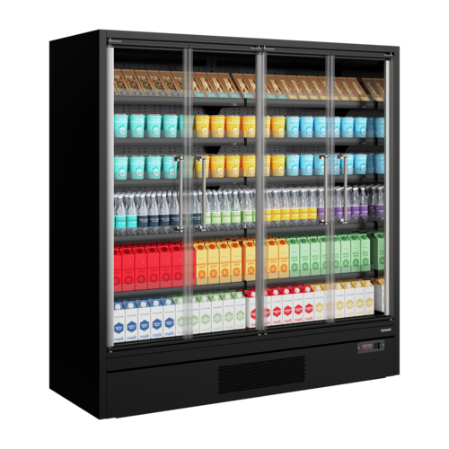 Multideck With Doors, EU Energy Class B, Can be multiplexed – Create uninterupted continuous line, Frameless glass doors for great product visibility, AdjusTABLE shelves (can be tilted), Heavy duty shelving with strengthening bar, Ticket strip and acrylic front riser as standard, Self-closing doors, Solid 40 mm endwalls with mirrored interior, Stainless steel bumper bars, Ventilated cooling, Can be multiplexed with kit (POA), Exterior Finish: BLACK RAL9005, Interior Finish: BLACK (RAL9005), Net Weight: 439kg”, automatic defrost type, R290 Refrigerant, Climate Class: 3, Energy Rating: B, Energy Consumption: 1997kWh per Annum, 13 amps (Web Deal Price is available until the 31st January 2026 whilst stocks last, when you place your order directly through the TEFCOLD website only)