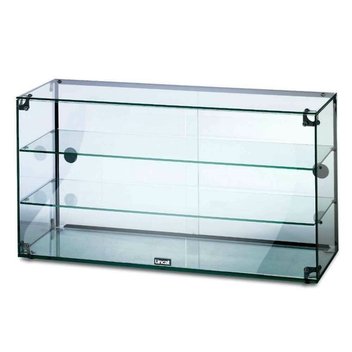 Seal Glass Display Case, ambient, countertop, 900 mm, 490 mm height, (2) 6 mm thick glass shelves, stainless steel shelf support brackets, sliding rear doors, 10 mm thick glass base, non-slip rubber feet, CE