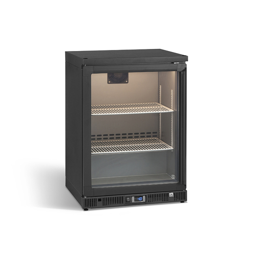 Glass Froster, undercounter, 600mm W, (50) pint glasses capacity, (1) left hinged glass door, -10° C / -17° C temperature range, automatic defrost, silver coloured skin plate interior, (2) adjustable shelves, anthracite exterior, (2) adjustable feet in front, R290 refrigerant, 220-240v/50/1-ph, 610 watts, heated glass door, interior light