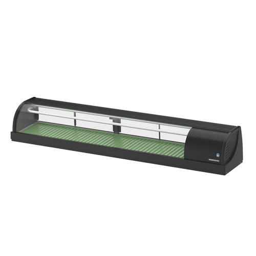 HNC Series Sushi Case, 1800mm, right side compressor, black finish, without LED light, curved glass with antiscattering film, (2) sliding doors, 72 litres capacity, top glass angles down providing 1700mm plate space on top of unit, stainless steel and glass construction, electronic control, self-contained R600a refrigeration, 220-240v/50/1-ph