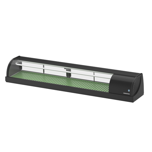 HNC Series Sushi Case, 1800mm, right side compressor, black finish, with LED light, curved glass with antiscattering film, (2) sliding doors, 72 litres capacity, top glass angles down providing 1700mm plate space on top of unit, stainless steel and glass construction, electronic control, self-contained R600a refrigeration, 220-240v/50/1-ph