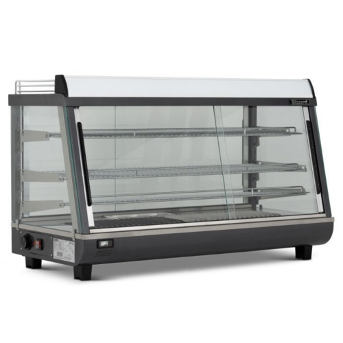 Blizzardâ„¢ Counter Top Heated Merchandiser, Front and rear access, easlily removable for cleaning, Internal LED illumination with on/off switch , 3 adjustable chrome plated shelves , Stainless steel construction, Easy to use digital controller, Mains cable on side , Low profile branding, Internal humidity pan