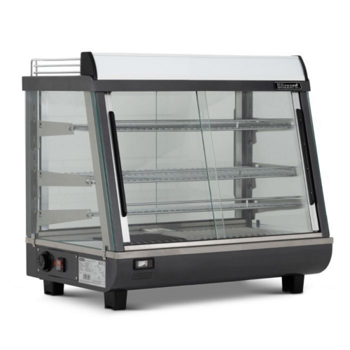 Blizzardâ„¢ Counter Top Heated Merchandiser, Front and rear access, easlily removable for cleaning, Internal LED illumination with on/off switch , 3 adjustable chrome plated shelves , Stainless steel construction, Easy to use digital controller, Mains cable on side , Low profile branding, Internal humidity pan
