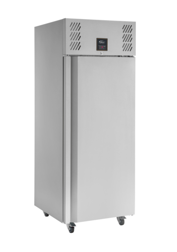 Crystal Freezer Bakery Cabinet, reach-in, one-section, top mount self-contained refrigteration (removable), 737mm W, -13/-21° C temperature range, solid self-closing door, barrel locks, (20) 18″ x 30″ tray capacity (not included), CoolSmart controller, 75mm polyurethane insulation, aluminium interior, food safe stainless steel exterior, HD swivel castors with brakes, R290, Out of Scope