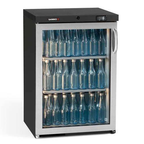 Noverta Bottle Cooler (low height), undercounter, one-section, 602mm W, 150 litre capacity, (144) 330 ml bottle capacity, (1) right hinged glass door with lock, digital thermostat, +1° C / +18° C temperature range, automatic defrost, silver coloured skin plate interior, LED lighting, (2) adjustable shelves, stainless steel exterior, 220-240v/50/1-ph, 135 watts, ETL, ECA Approved, MEPS C