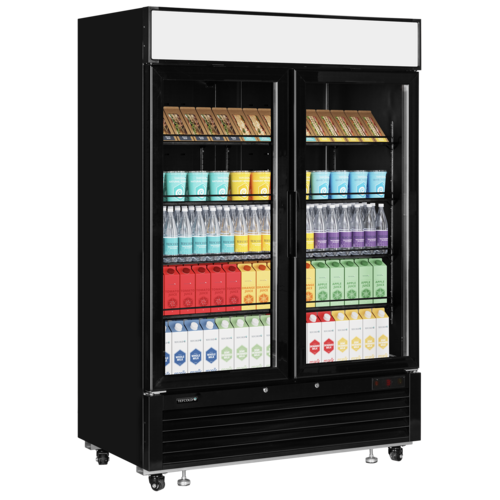 Glass Door Merchandiser, fully automatic, fan assisted cooling, Automatic defrost, lock, AdjusTABLE shelves, Castors and locking feet, LED interior light with switch (2 LED strips per door), Digital controller and temperature display, LED Light canopy with switch, Internal stainless steel base, Self closing doors with stay open feature for ease of loading, Exterior Finish: BLACK, Interior Finish: BLACK, Net Weight: 190kg”, Defrost Type: Off Cycle, R290 Refrigerant, Climate Class: 4, Energy Rating: B, Energy Consumption: 1900kWh per Annum, 13 amps (Web Deal Price is available until the 31st January 2026 whilst stocks last, when you place your order directly through the TEFCOLD website only)