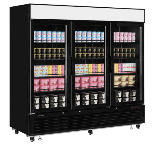 Interlevin Freezer Merchandiser, three section, 2050-litre/72.39 cu.ft. interior capacity, -14° to -25°C temperature range, digital controller & temperature display, (3) hinged doors with anti-mist glass & locks, (4) adjustable shelves per door, LED interior lighting, LED canopy, fan assisted cooling, electric defrost, black interior & exterior, internal stainless steel base, castors with locking feet, R290, 1200 watts, 7.3 amps, MEPS D (Web Deal Price is available until the 31st January 2026 whilst stocks last, when you place your order directly through the TEFCOLD website only)