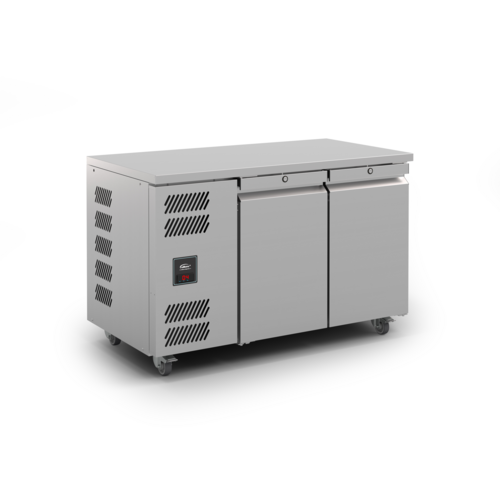 Jade Freezer Counter, reach-in, two-section, side mount self-contained refrigeration (removable cassette), 1338mm W, 317 litre capacity, -18/-22° C temperature range, (2) self-closing doors with magnetic balloon gasket, barrel locks, (2) 1/1 GN shelves per section, Capacitive Touch CoolSmart controller with IP55 rated display, polyurethane insulation, designed to operate efficiently up to a 43° C ambient, stainless steel exterior, aluminium interior, HD non-marking swivel castors with brakes, R290 MEPS C