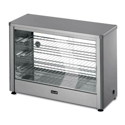 Seal Pie Cabinet, electric, countertop, 710 mm, (3) chrome plated rod shelves, thermostatic control, solid glass front, sliding rear doors, stainless steel construction, 0.75 kW, 3.3 amps, CE