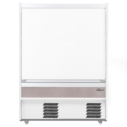 M-Series Multi-Deck Refrigerated Display Case, self-service, open front, security shutter, bottom mount self-contained refrigeration, 1510mm W, 740 litre (26.1 cu. ft.) capacity, +3/+5°C temperature range, digital controls, (4) adjustable shelves with detachable ticket strips, LED strip lighting, stainless steel finish, castors