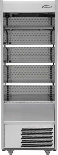 M-Series Multi-Deck Refrigerated Display Case, self-service, open front, night blind, bottom mount self-contained refrigeration, 710mm W, 322 litre (11.4 cu. ft.) capacity, +3/+5°C temperature range, digital controls, (4) adjustable shelves with detachable ticket strips, LED strip lighting, white finish, castors