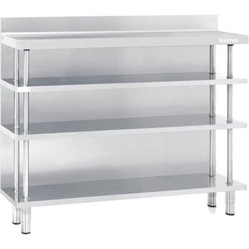 Infrico Back Bar Shelving Unit, High grade 304 stainless steel fabrication, Adjustable legs, 100mm coved upstand, Suites FMPP range, Stylish, sturdy & practical