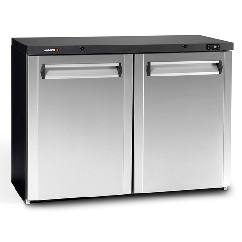 Noverta Bottle Cooler, undercounter, two-section, 1200mm W, 275 litre capacity, (322) 330 ml bottle capacity, (2) hinged glass doors with locks, digital thermostat, +2° C / +18° C temperature range, automatic defrost, silver coloured skin plate interior, LED lighting, (2) solid shelves, stainless steel exterior, 220-240v/50/1-ph, 185 watts, ETL, ECA Approved, MEPS C