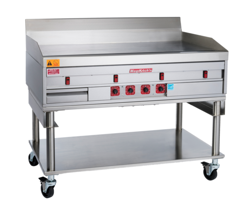 MagiKitch’n Griddle, electric, countertop, 1520 mm, 250 mm thick chrome plate, (5) thermostatic controls, (5) on/off switches, grease trough & box, tapered splash back, stainless steel sides & cabinet base, 102 mm removable legs cETLus, ETL-Sanitation ENERGYSTAR®