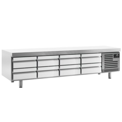 Infrico Gastronorm Snack Table, High grade AISI 304 stainless steel exterior & interior, Rounded internal corners for easy cleaning, Drawers have telescopic slides for complete opening (105mm x 305mm x 508mm), Adjustable legs, Fully injected compact structure, Digital controller, Front ventilation and condensation system, Evaporative tray without electric resistances