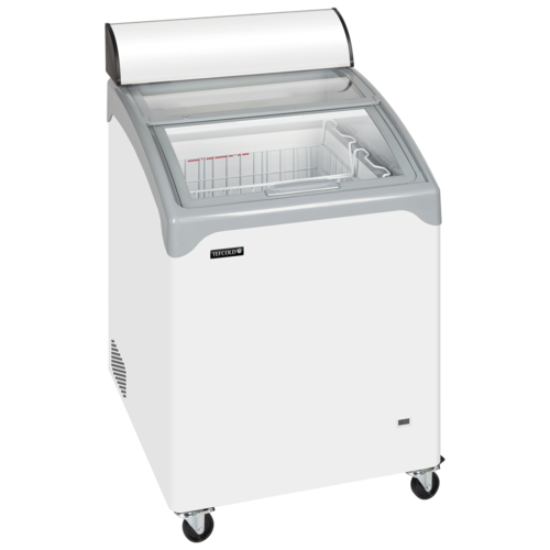Sliding Curved Glass Lid Chest Freezer, Curved sliding lid with lock, Static cooling, Thermometer, Divider system, LED illuminated canopy, Castors, 2 lockable, white exterior finish, Interior Finish: White painted steel, Net Weight: 47kg”, Defrost Type: Manual, R600a refrigerant, Climate Class: 5Energy Rating: D,Energy Consumption: 491kWh per Annum, 13 amps