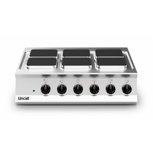 Opus 800 Boiling Top, electric, countertop, 900 mm, (6) square 2.6 kW hot plates, six heat position manual control, fully sealed hob top, flush mount rear flue, stainless steel construction, IPX4, CE