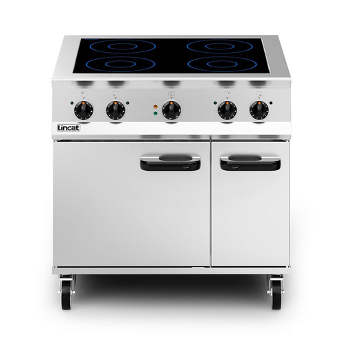 Opus 800 Induction Range, electric, 900 mm, (4) 5.0 kW cooking zones, 6mm thick glass ceramic surface, automatic pan detection, fan assisted oven with thermostatic control, (1) solid door, (2) chrome plated shelves, removable bottom oven liner, stainless steel construction, IPX4, CE